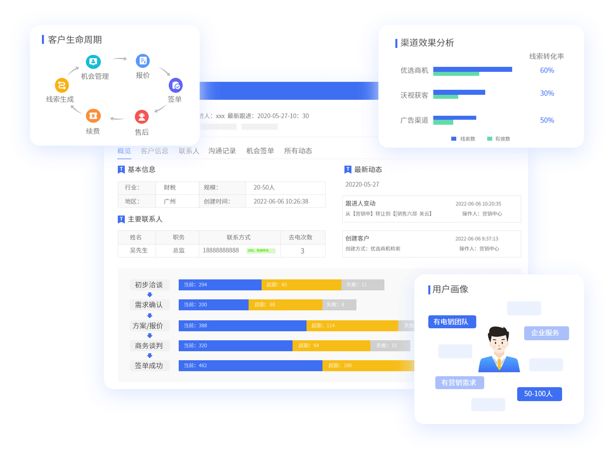 从获客、触客、管客、成交四大方面,为销售与每一个客户建立关系桥梁,从源头上提升销售整体业绩,为中小企业降本增效。